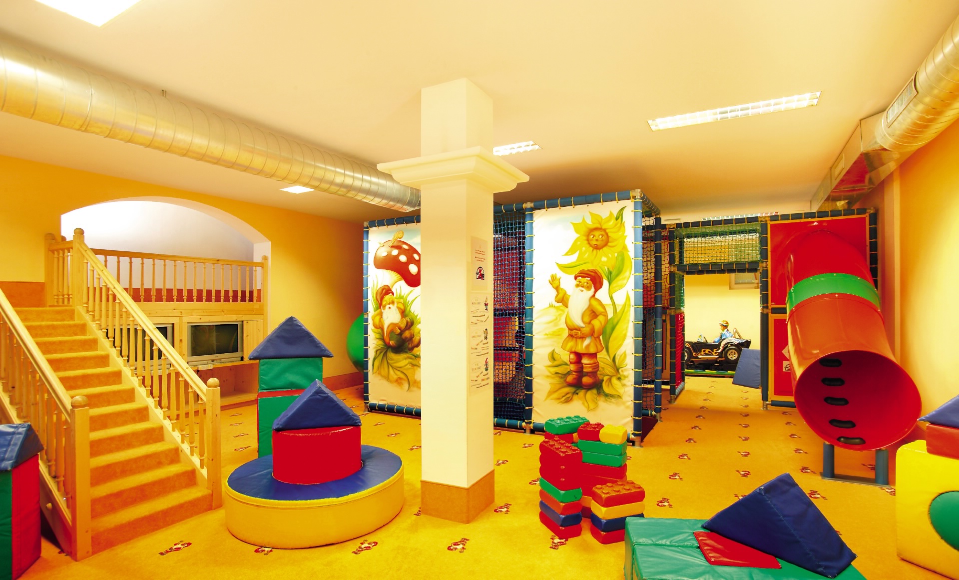 Der große Spiel- und Erlebnispark „König Laurin“ auf 400m² mit einer 8m hohen Turmrutsche, einer Play Station, Bauklötzen und vielen tollen Spielsachen ist das Eldorado für Kinder. Hier im Spielraum des Hotels finden die Kleinen alles was das Herz begehrt und sind gut aufgehoben. Der Kinderspielraum ist täglich geöffnet.