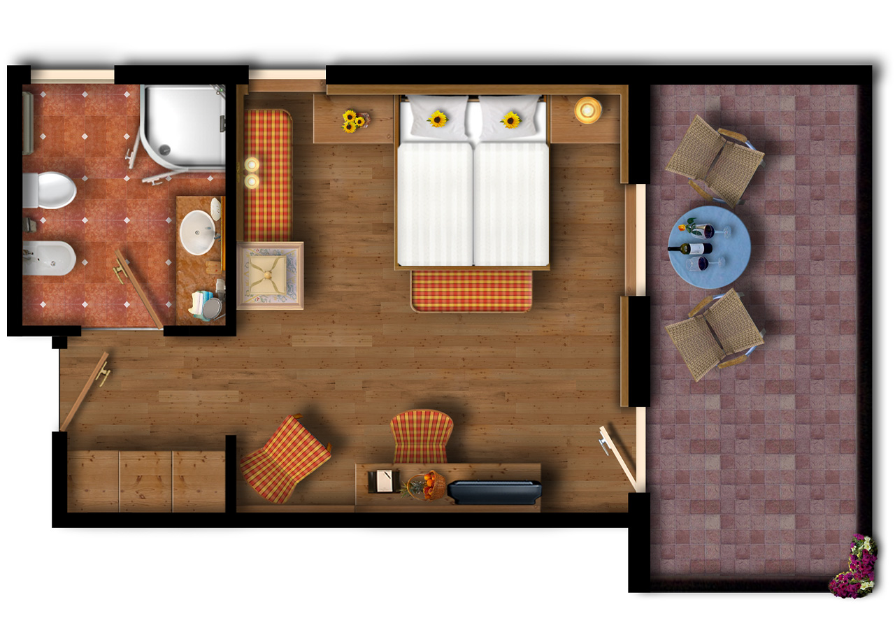 Camere doppie dotate di doccia o vasca/WC, balcone, salottino, cabina armadio, TV satellitare, radio, telefono, connessione internet, cassetta di sicurezza, asciugacapelli, frigobar, possibilità d’aggiunta del 3° e 4° letto.