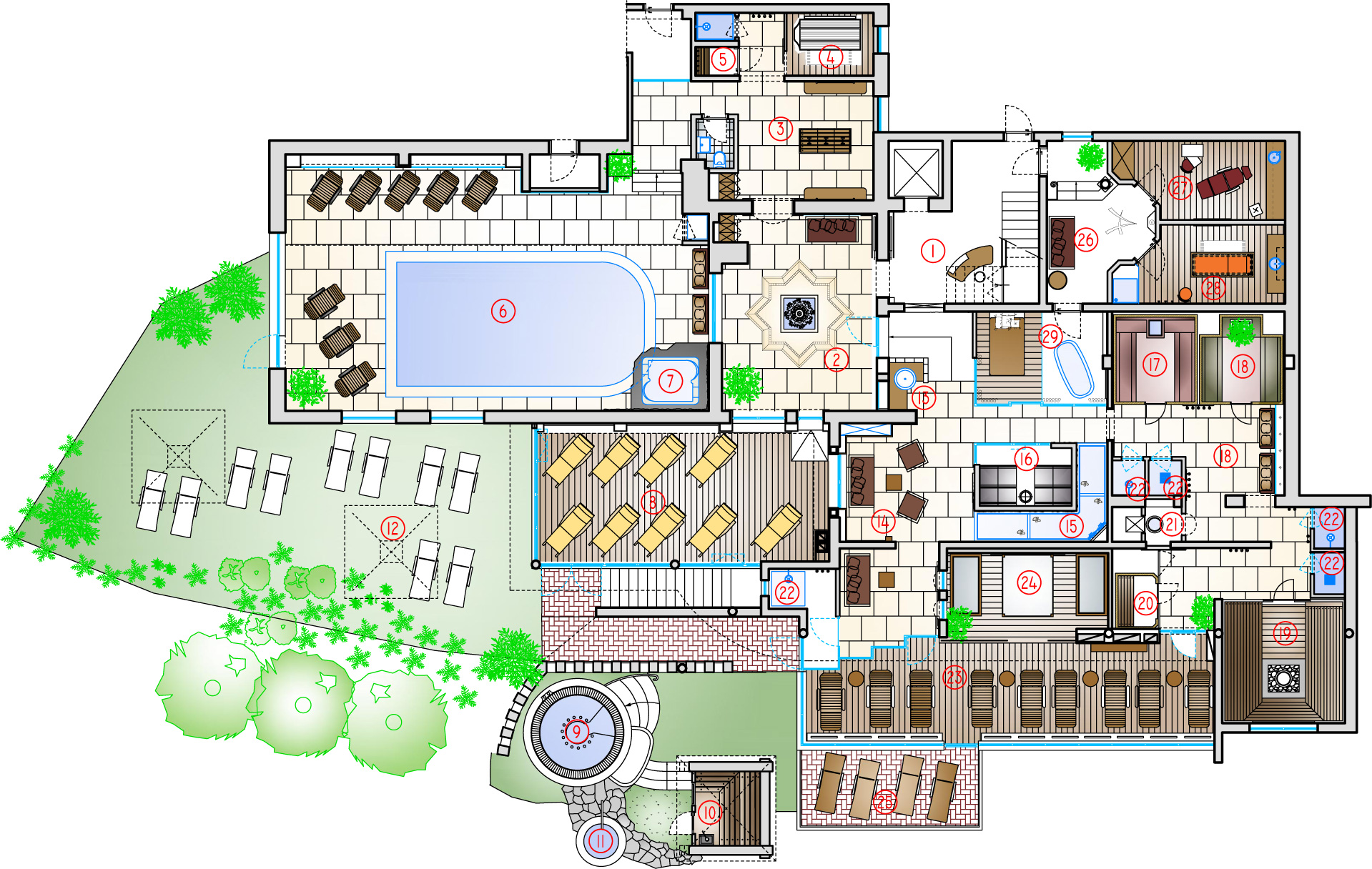 Goditi la quiete di questi luoghi nel rivivere i momenti e le emozioni della giornata. Il calore benefico del reparto sauna e la varietà di proposte del complesso acquatico concorrono a far ritrovare il giusto equilibrio interiore e ad accrescere forza e vigore. Nel reparto estetico ALAUNA è possibile usufruire di massaggi benefici e rilassanti approfittando inoltre dell'allentamento delle tensioni regalato da un bagno aromatico caldo. L’ampia scelta di trattamenti estetici e i prodotti cosmetici di qualità della rinomata linea GUINOT preannunciano momenti di piacere e relax.